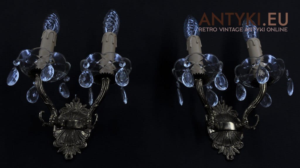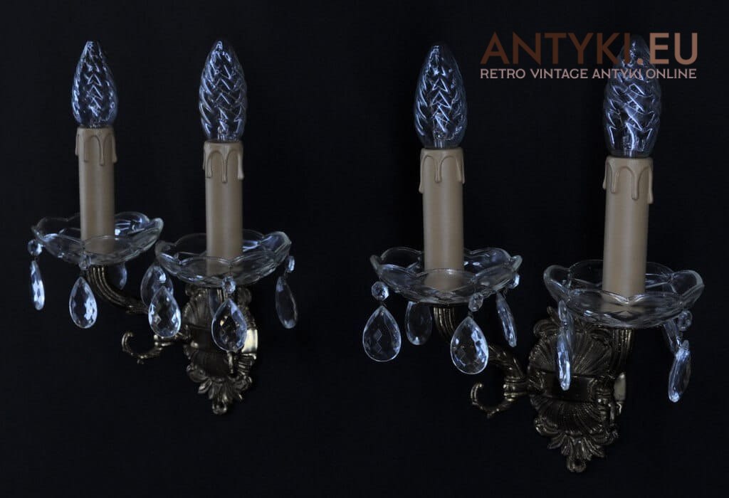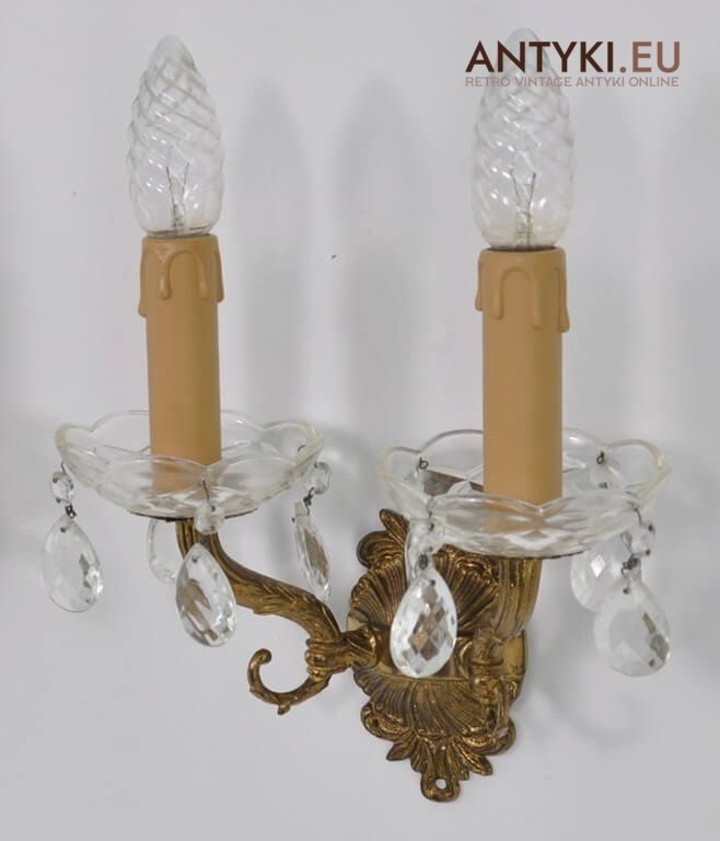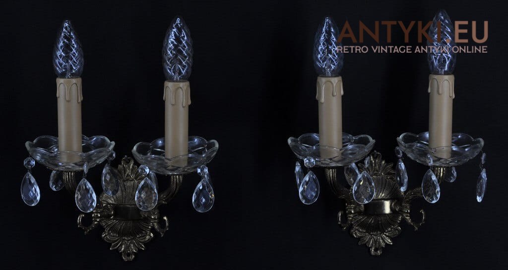 2 kryształowe kinkiety. Lampki ścienne rustykalne.