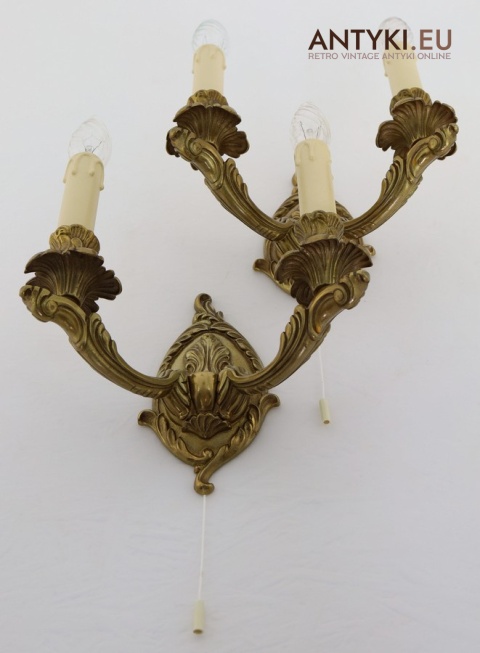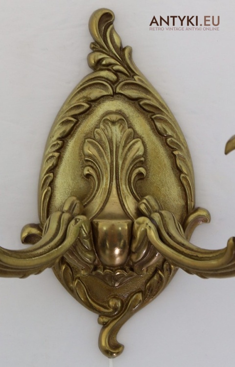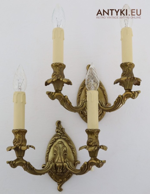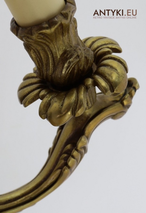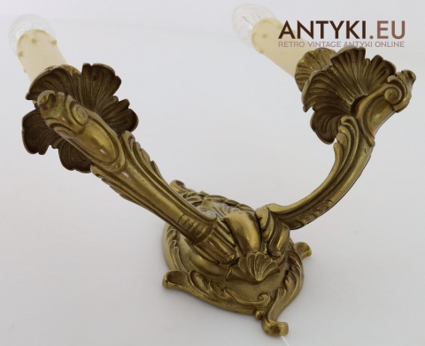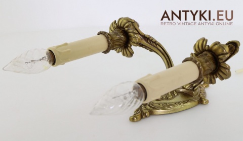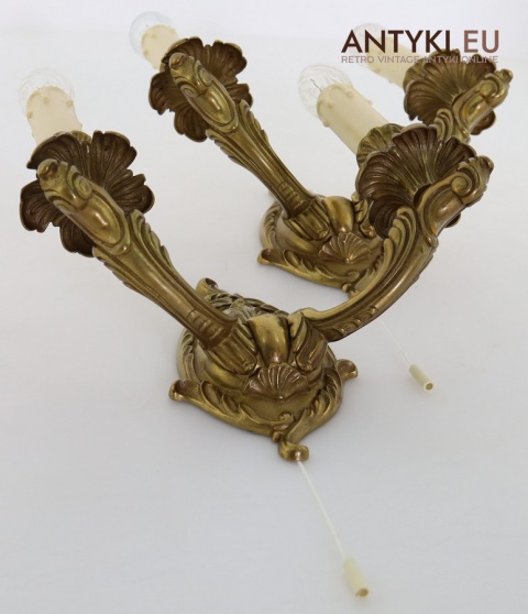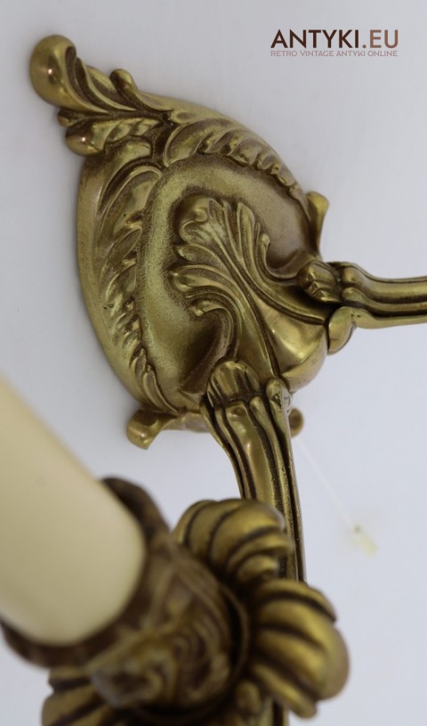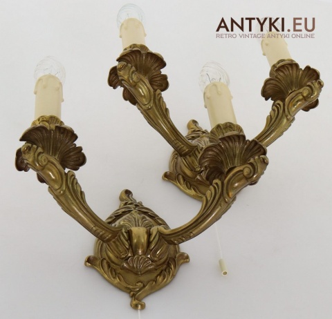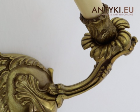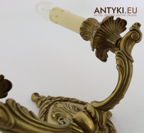 Stylowe antyczne kinkiety z masywnego mosiądzu – barokowy akcent do salonu, gabinetu lub hotelu