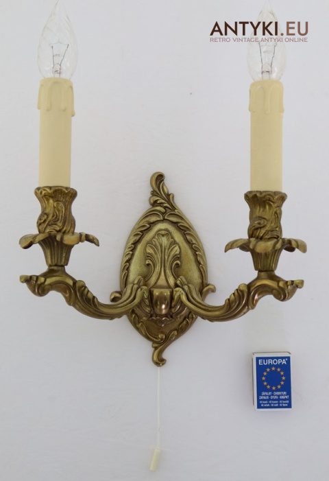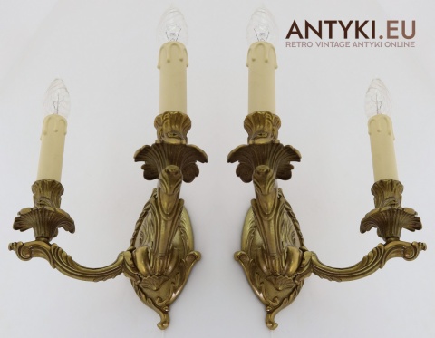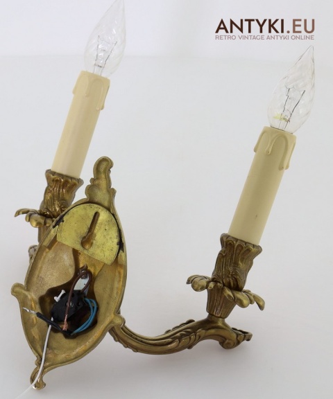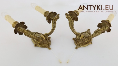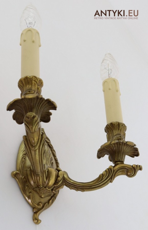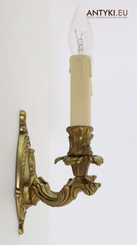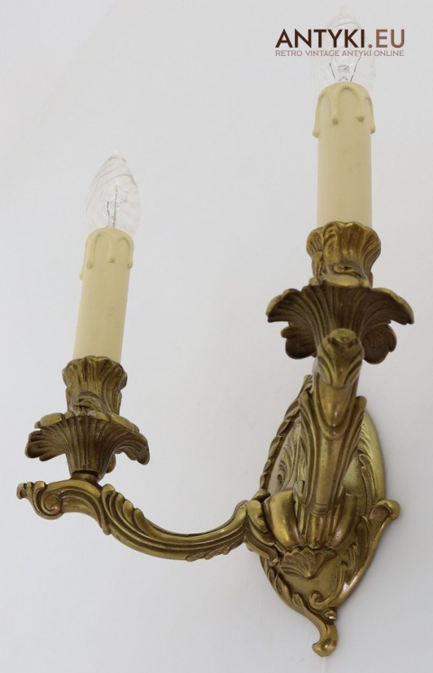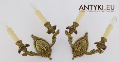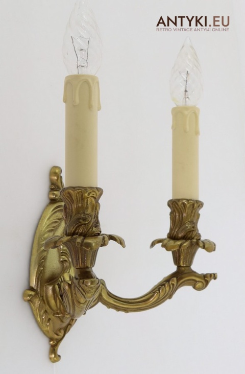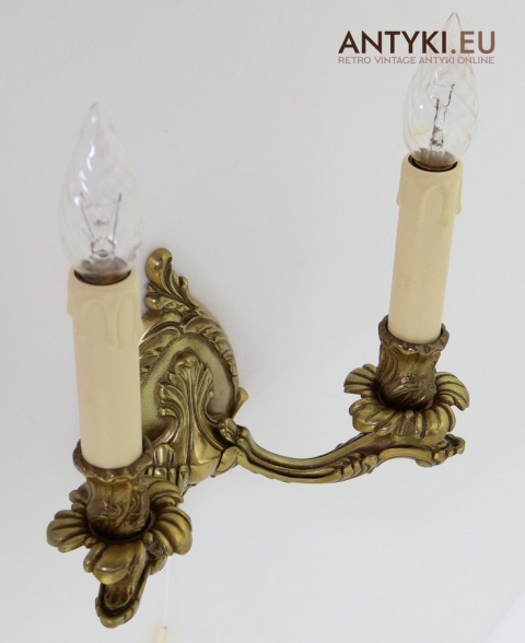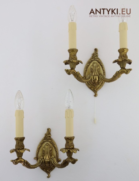 Stylowe antyczne kinkiety z masywnego mosiądzu – barokowy akcent do salonu, gabinetu lub hotelu