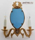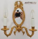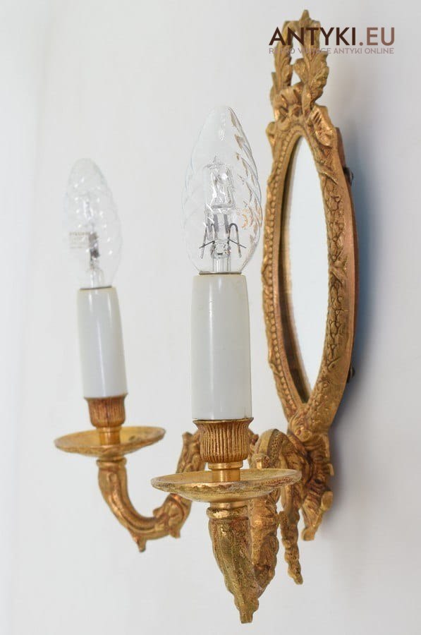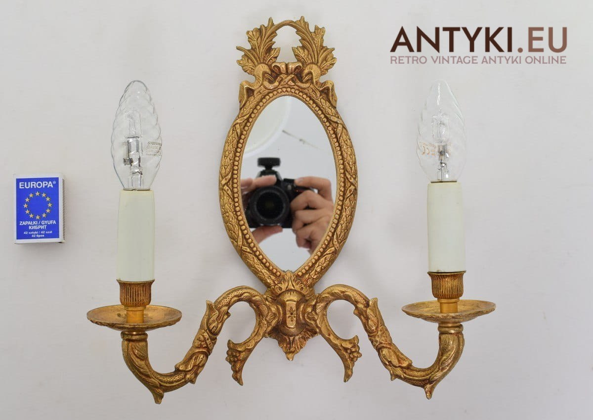 2 złote kinkiety z lusterkami salonowe lampki zabytkowe do stylowego wnętrza antyki i oświetlenie