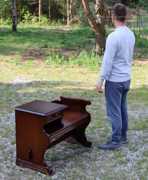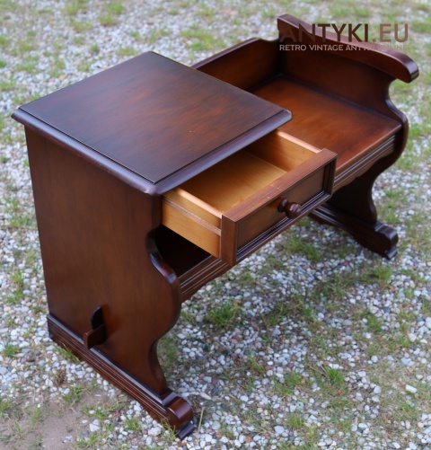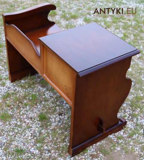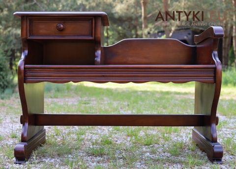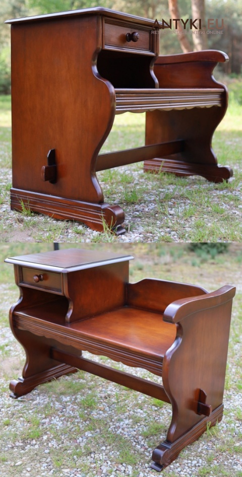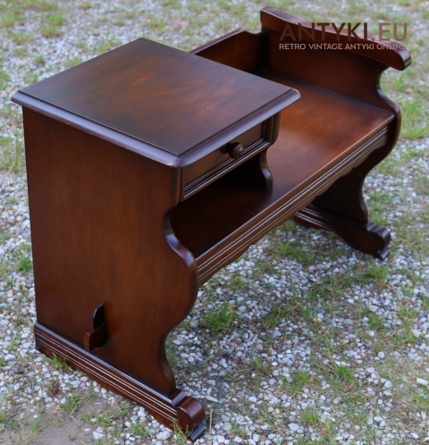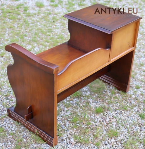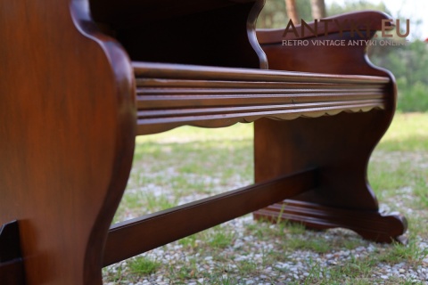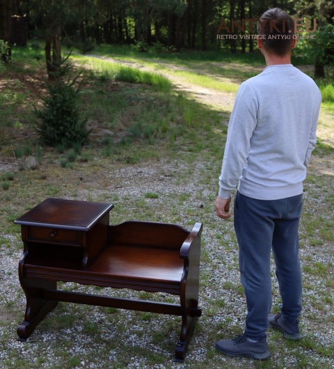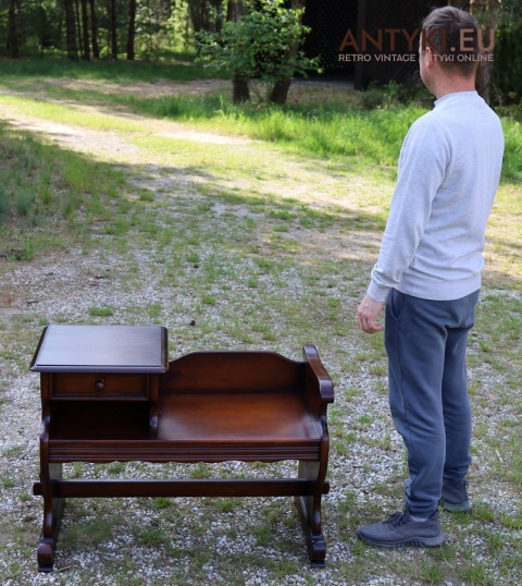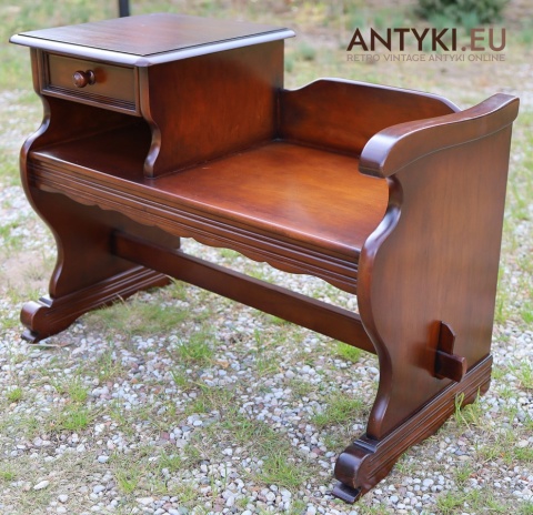 Przedstawiamy bardzo solidnie wykonane, masywne (20kg!) - wyjątkowe antyczne siedzisko w stylu Chippendale, wykonane z litego drewna orzechowego – mebel o niezwykle eleganckiej, klasycznej linii, sprowadzony z Francji. Pochodzi z drugiej połowy XX wiewku. Charakterystyczne gięte nogi, frezowany front i subtelne detale to cechy typowe dla stylu Chippendale, który narodził się w XVIII-wiecznej Anglii, a do dziś zachwyca swoją ponadczasową elegancją i jakością wykonania.
