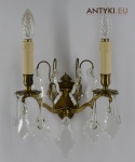 Sprowadzony z Austrii. Pochodzi z połowy ubiegłego wieku. Wykonany z masywnego brązu + prawdziwe kryształowe zawieszki i szklane sople ( zero plastiku ).