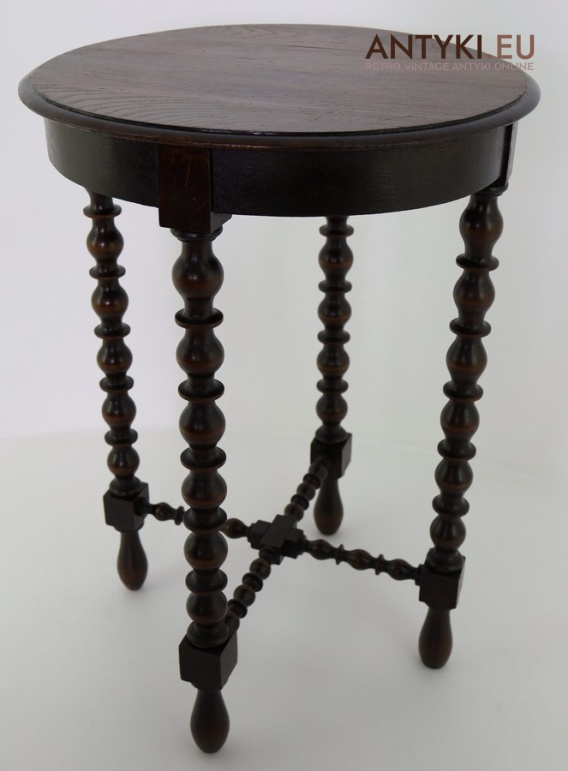 Stylowy stolik pod lampkę lub kwiat – toczone nogi z przełomu XIX–XX wieku