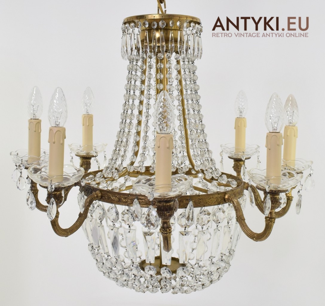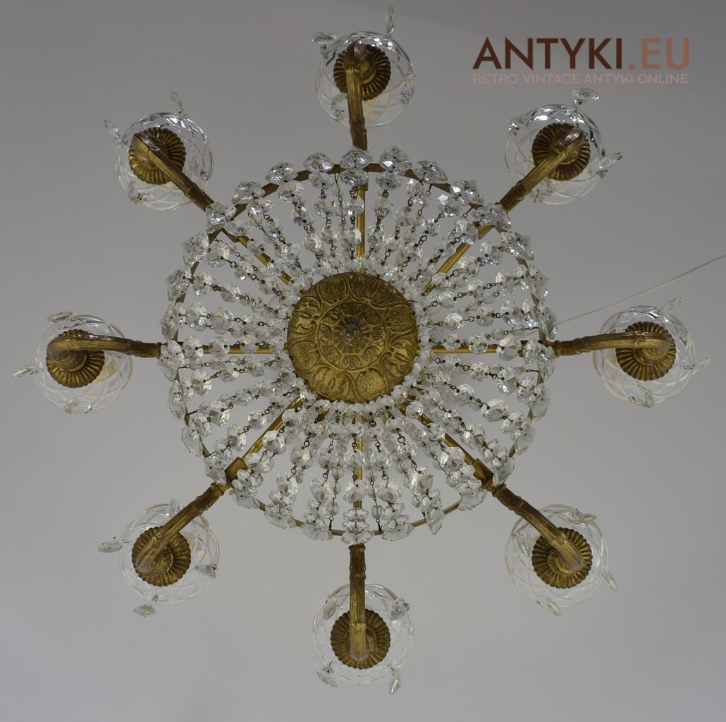 Zabytkowy żyrandol kryształowy w stylu pałacowym z połowy XX wieku