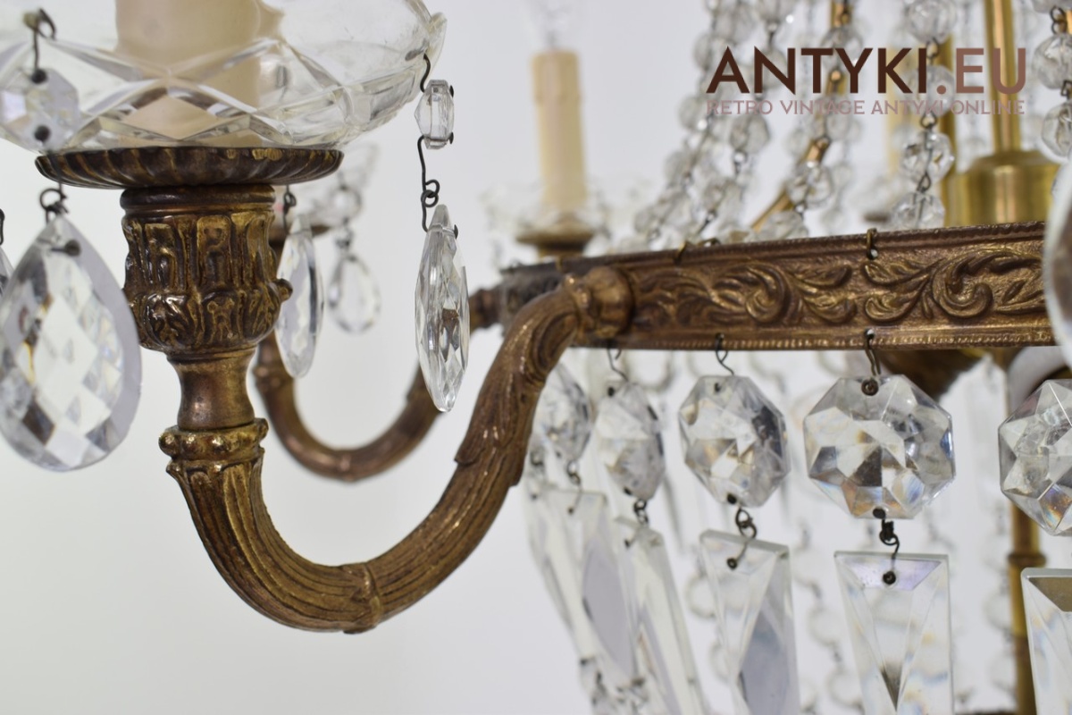 Elegancki austriacki żyrandol z kryształami i mosiężnymi ramionami – luksusowy akcent do stylowych wnętrz