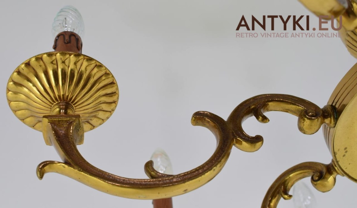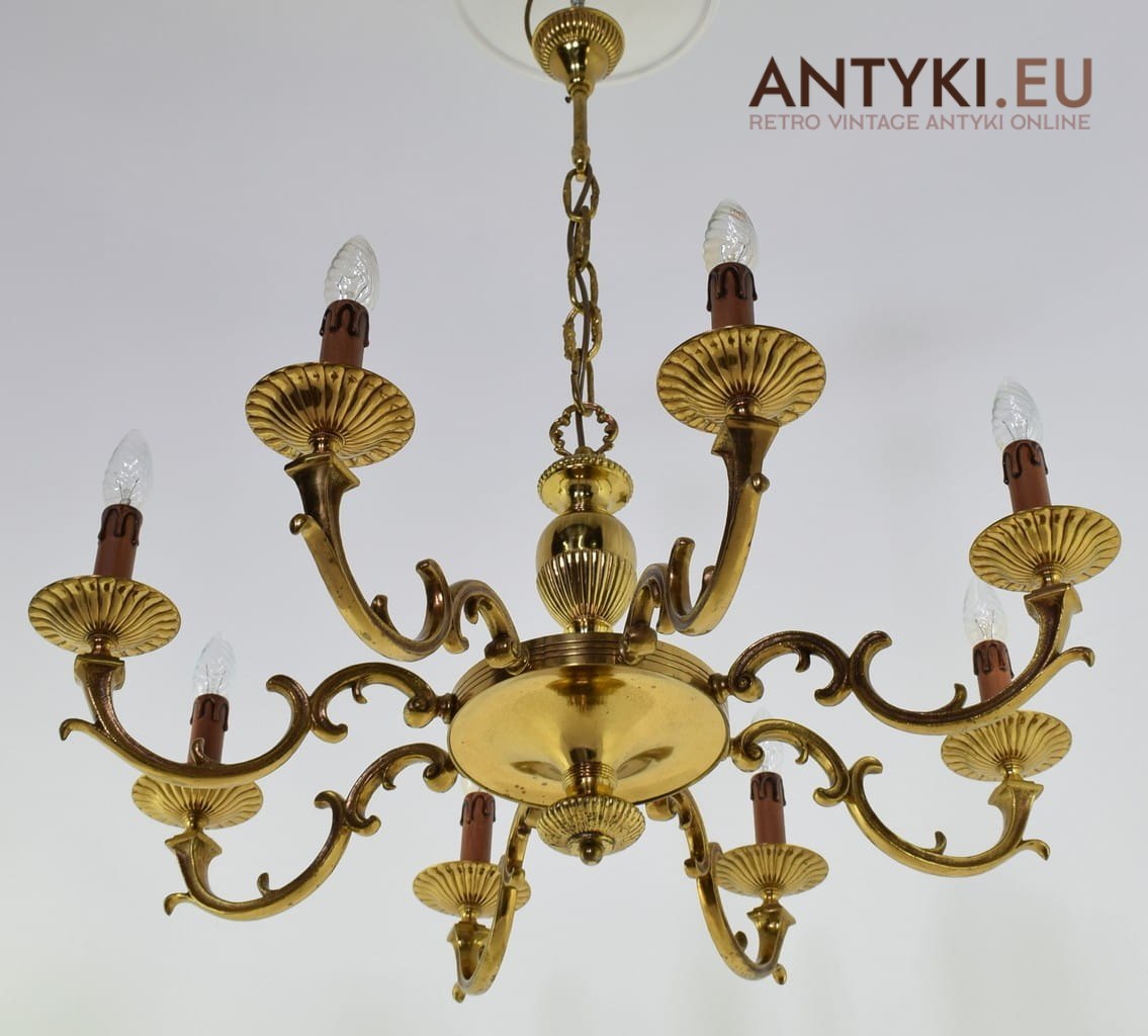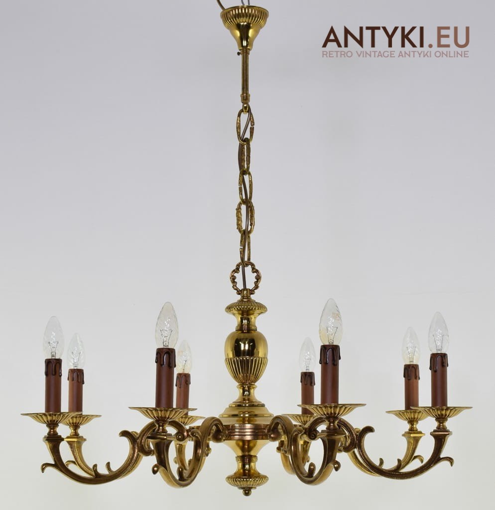 Antyczny, klasyczny żyrandol mosiężny do salonu. Lampy antyki.