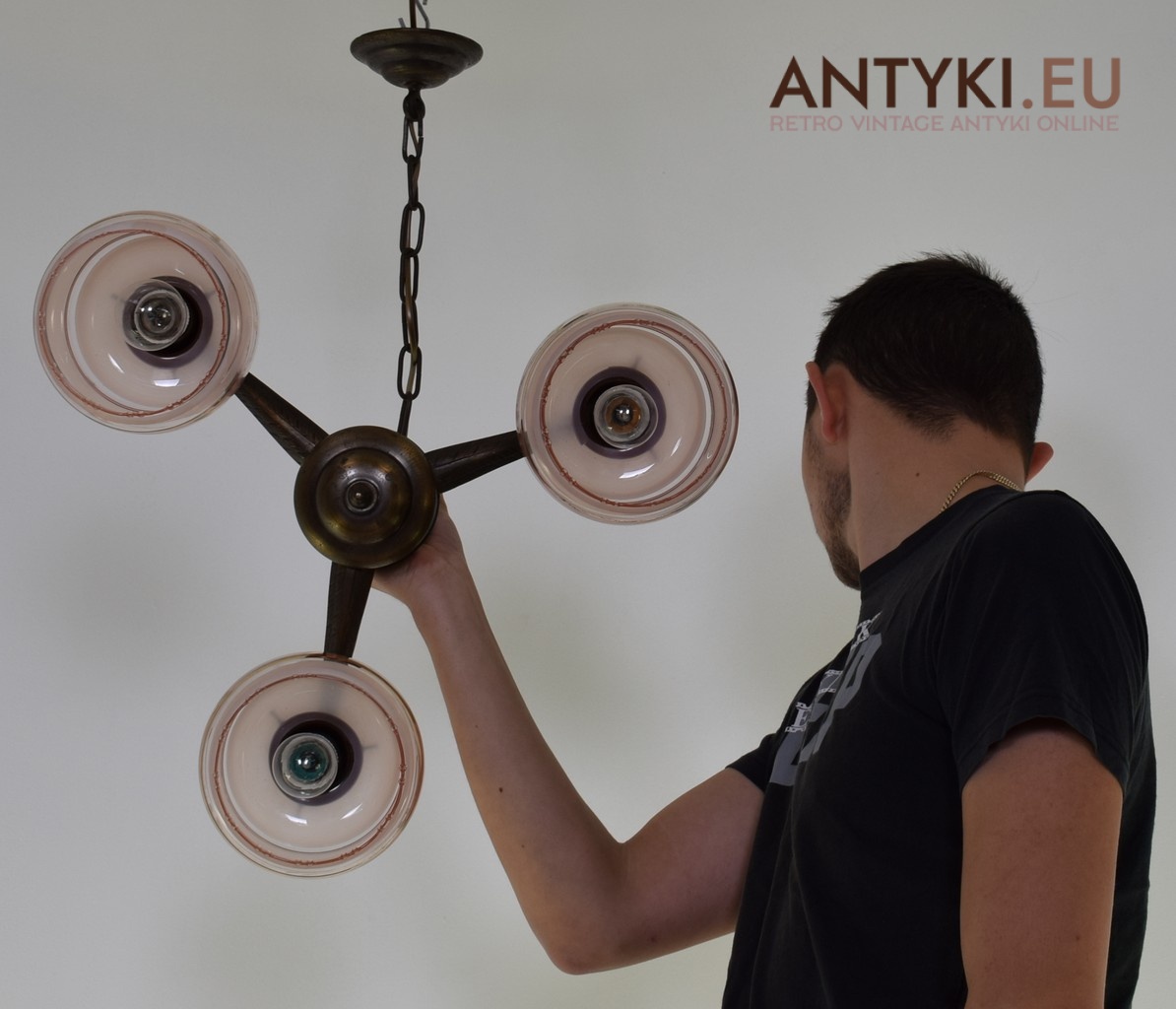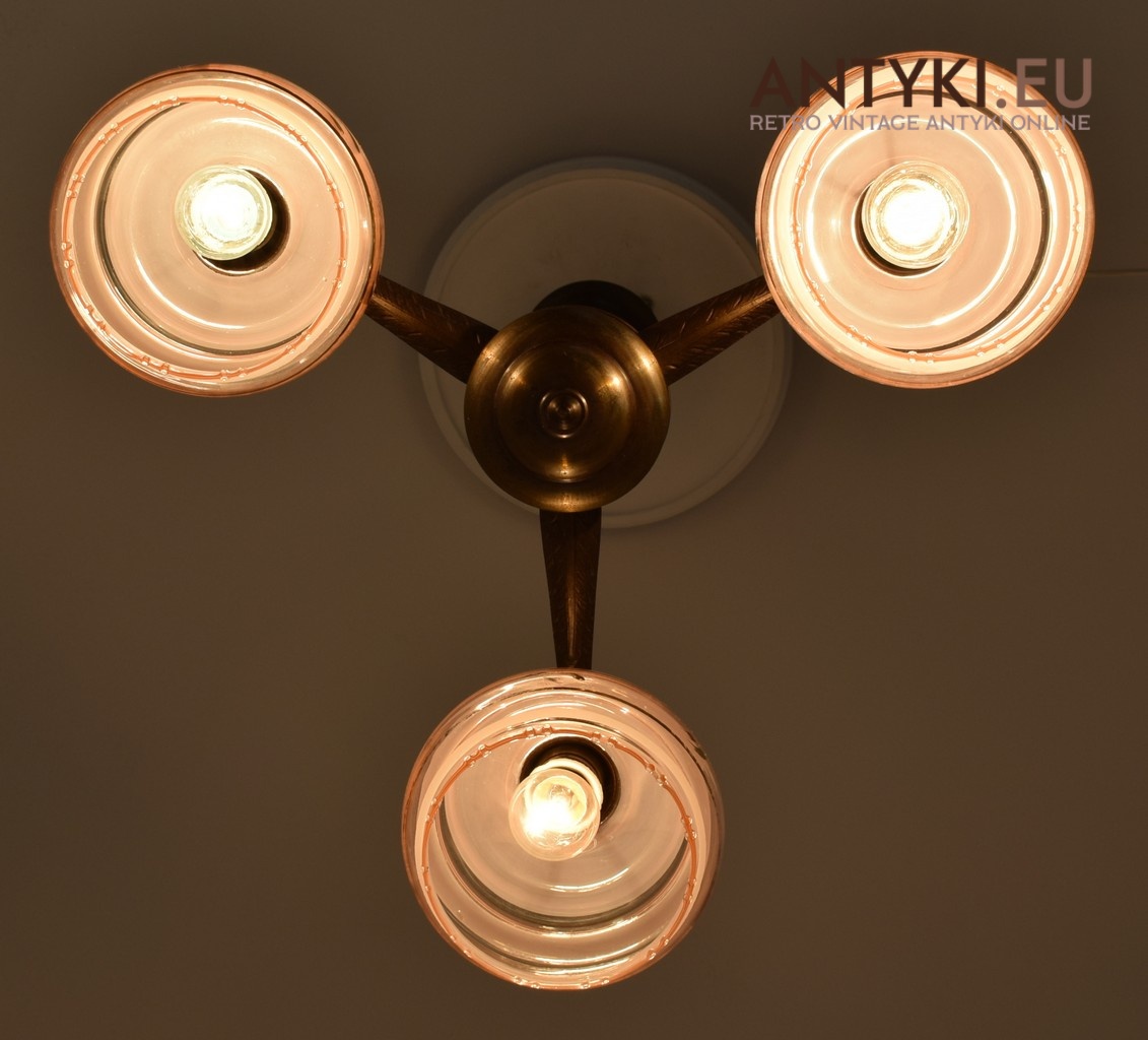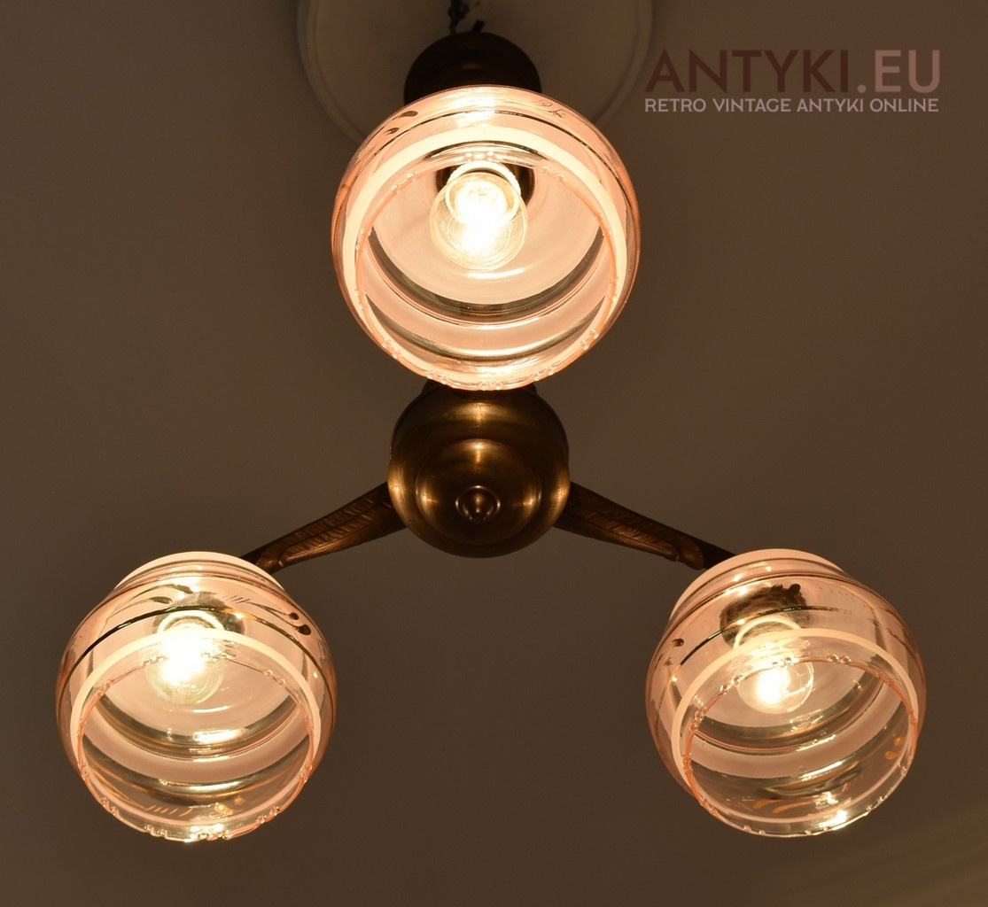 Art Deco muzealny żyrandol 3 ramienny z kloszami. Lampy retro.