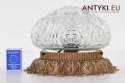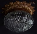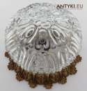 Bardzo ozdobny plafon pochodzi z połowy XX wieku. Sprowadzony z Austrii. Wykonany z mosiądzu i pięknego wyrazistego szklanego klosza.