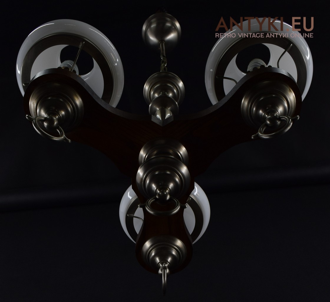 Cottagecore, srebrny żyrandol rustykalny z kloszami w stylu retro.