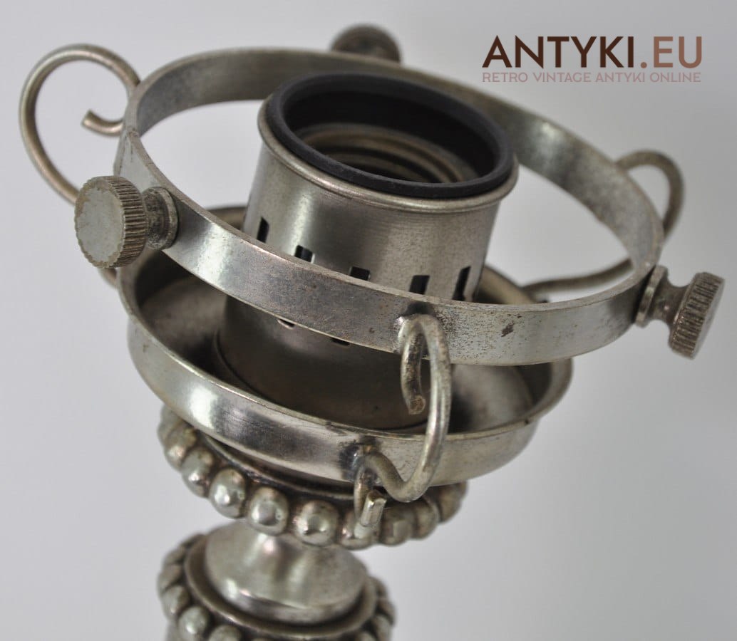 DUŻY STARY KINKIET SREBRNA LAMPA Z KLOSZEM ANTYK