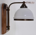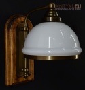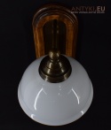 Przedstawiamy Państwu dużą klasyczną lampę ścienną w rustykalnym stylu, która została sprowadzona z Niemiec. To unikalne oświetlenie pochodzi z lat 1970 i jest doskonałym przykładem piękna i elegancji tamtej epoki. Wykonana z litego drewna, mosiądzu oraz szklanego mlecznego klosza, ta lampa to nie tylko funkcjonalny element wystroju wnętrza, ale również prawdziwa ozdoba.