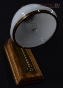 Całość bez uszkodzeń. Przedmiot kompletny, profesjonalnie wyczyszczony. Elektryka sprawna - sprawdzana przez naszego fachowca. Standardowe gniazda elektryczne typu E27. Obecnie można kupić żarówki LED o różnym natężeniu, różnej barwie światła i różnym wyglądzie. Nawet mała żarówka może być dużej mocy i nie będzie pobierać wielu watt, przez co nie przegrzewa i nie uszkodzi kabli elektrycznych. Wszystkie lampy wysyłamy bez żarówek. Żarówki tego typu są łatwo dostępne w sklepach elektrycznych lub w internecie.