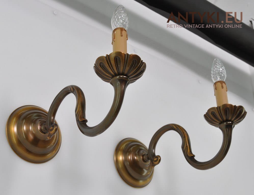 Duże kinkiety mosiężne do salonu w dawnym stylu. Lampy antyczne.