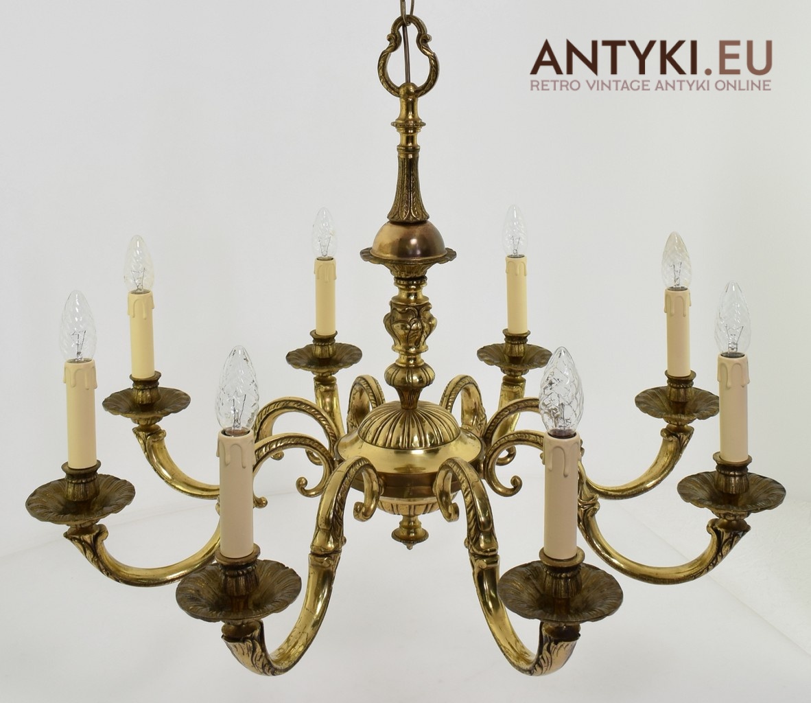 Duży antyczny żyrandol mosiężny do salonu pałacowego.