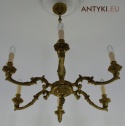 Duży antyczny żyrandol mosiężny w barokowym stylu.
