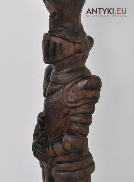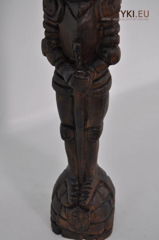 Duży drewniany świecznik. Rycerz z drewna. Rzeźba. Antyk.