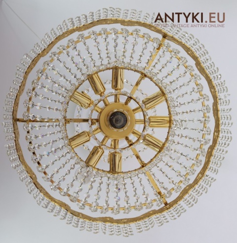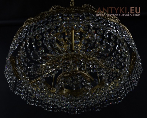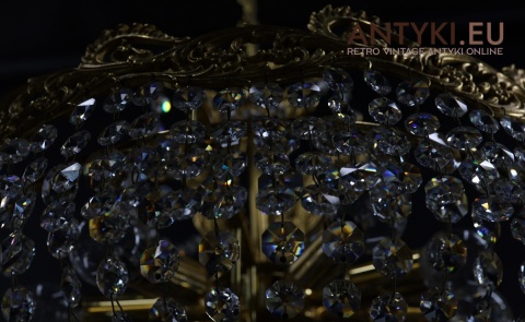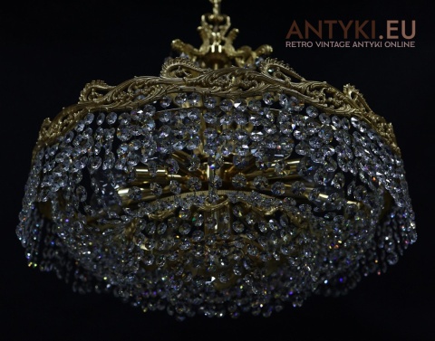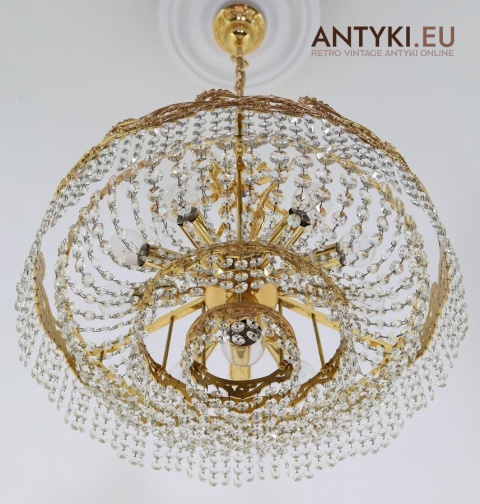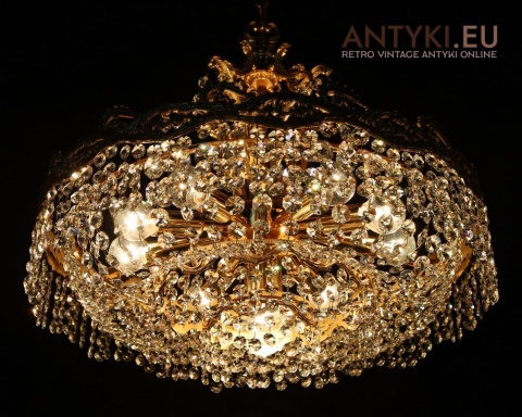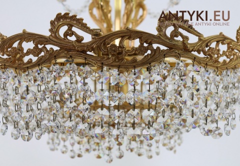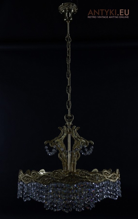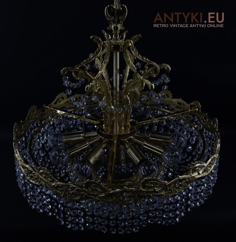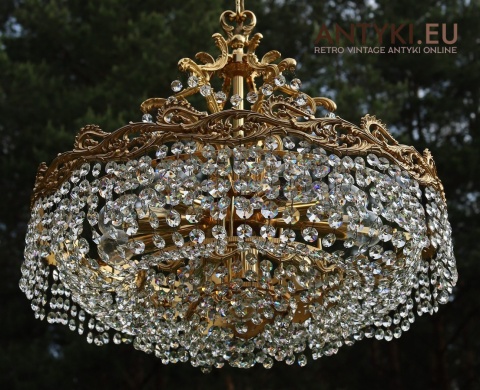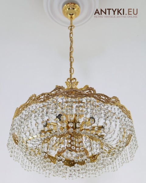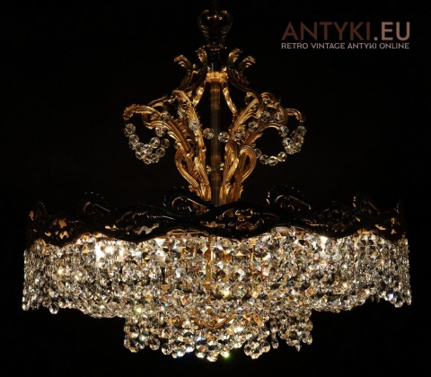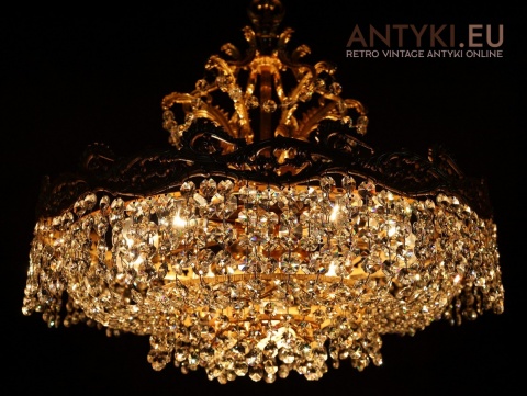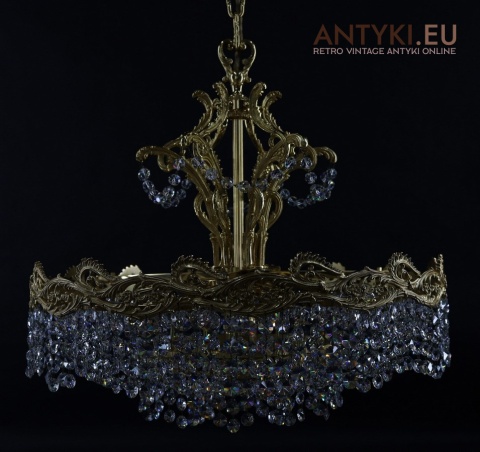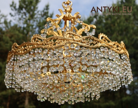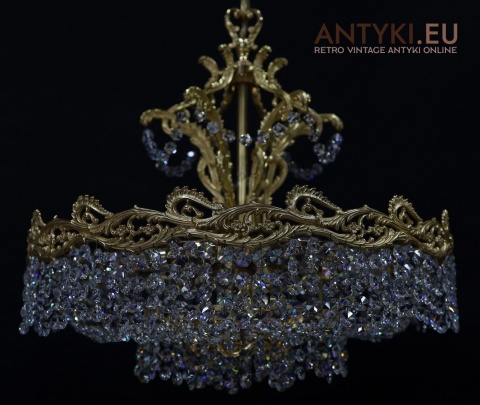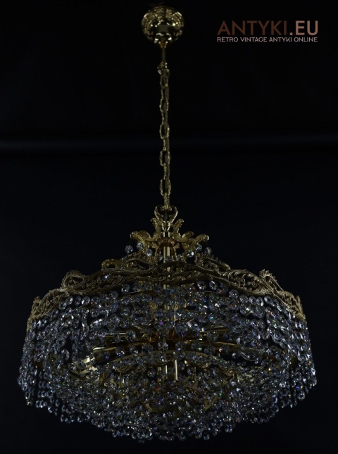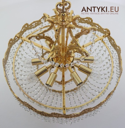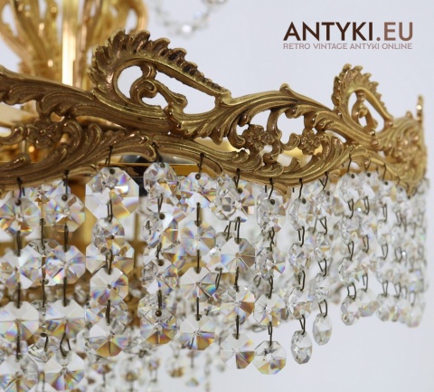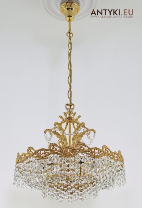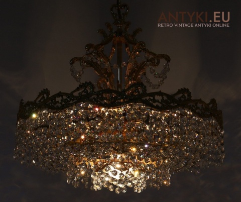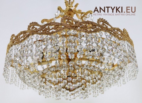Zabytkowy żyrandol w stylu pałacowym z Francji – luksusowy, kryształowy i mosiężny hit do salonu lub gabinetu!