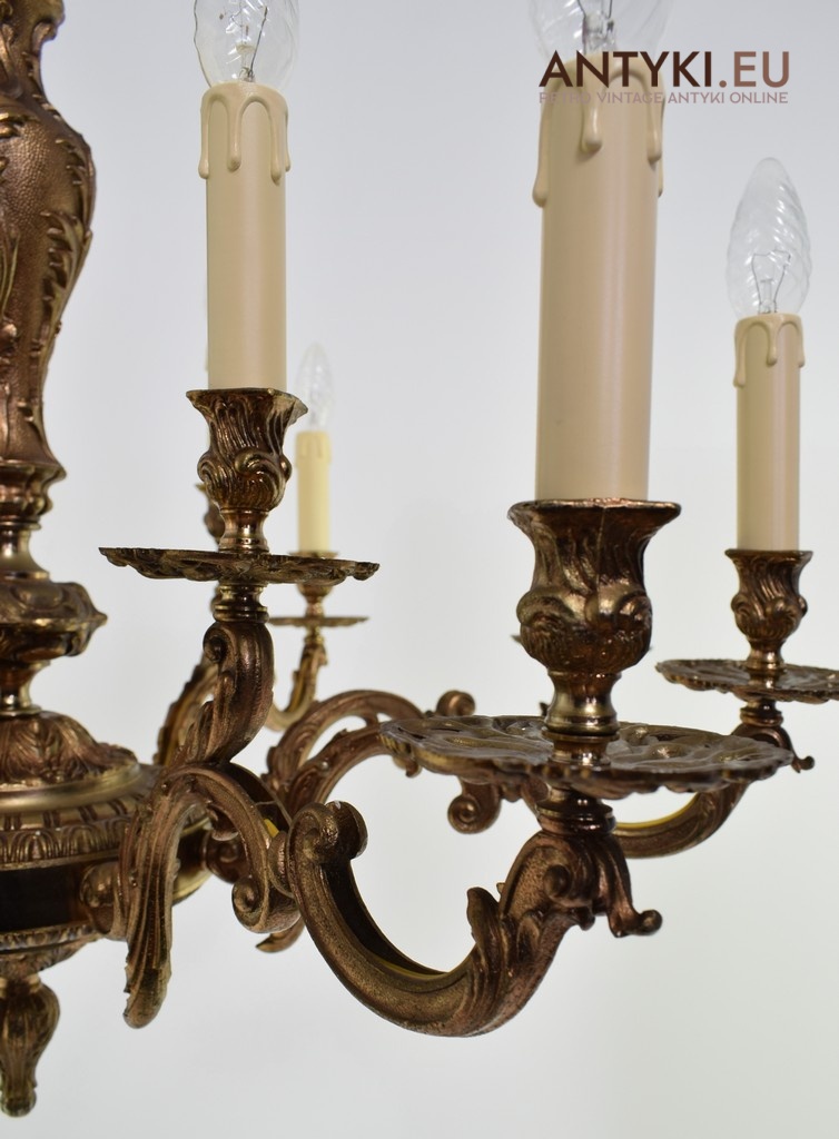 Duży mosiężny żyrandol do zamku, pałacu. ŚREDNICA - 80cm! 12 punktów świetnych!
