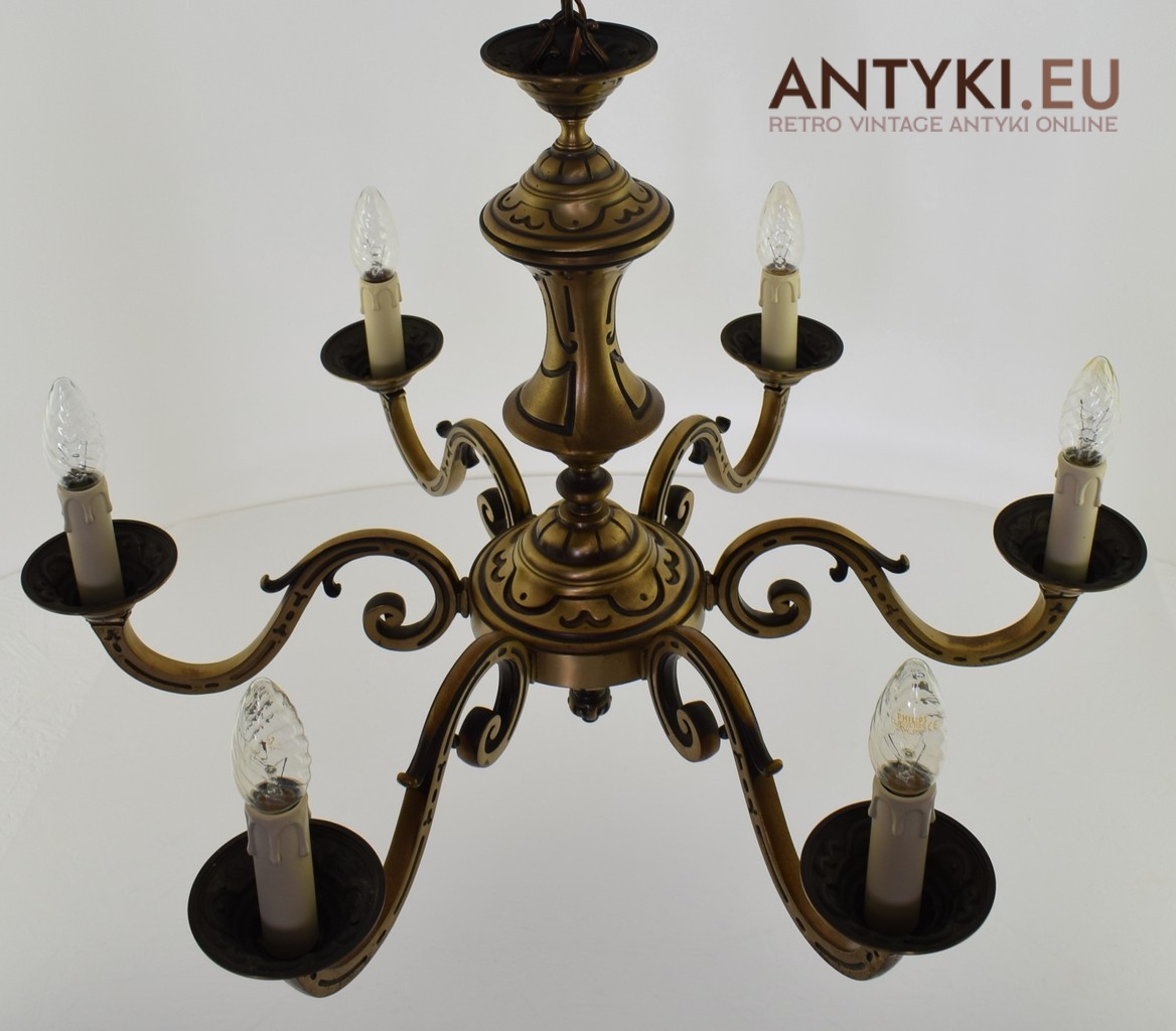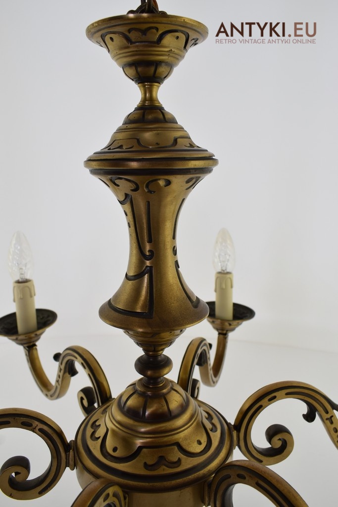Duży mosiążny żyrandol salonowy retro vintage. Lampy antyki.