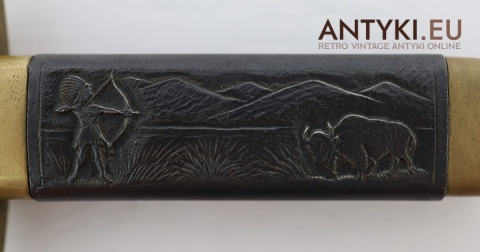 Przedstawiamy wyjątkowy antyczny nóż kolekcjonerski, sprowadzony bezpośrednio z Francji. Datujemy na 1950–1970 rok. Ten stary, masywny nóż wykonano z litego brązu oraz stali o wysokiej jakości, co zapewnia mu niesamowitą trwałość i elegancję. Bardzo ostre ostrze!