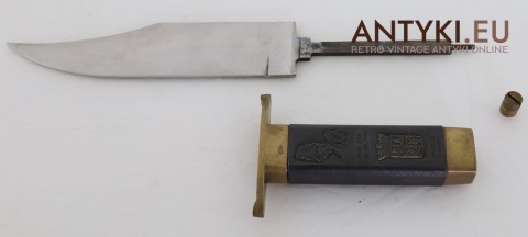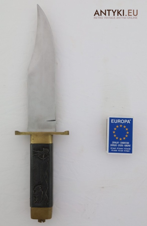 Całkowita długość noża to aż 30 cm, a jego waga wynosi imponujące 0,5 kg – to prawdziwy kolekcjonerski rarytas dla miłośników antyków, retro oraz vintage.