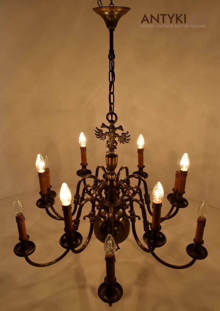 Dworski żyrandol 12 ramienny w stylu retro, vintage.