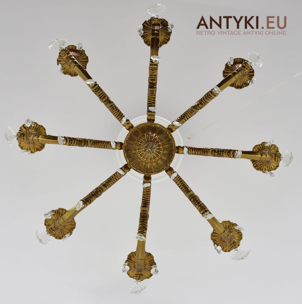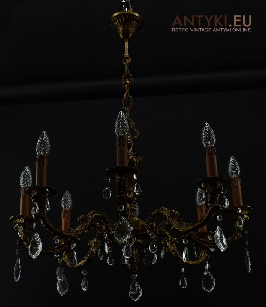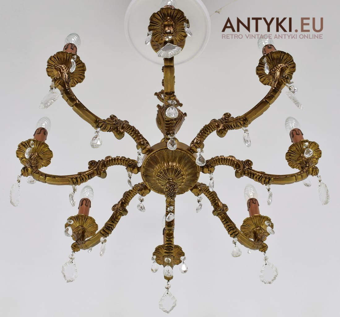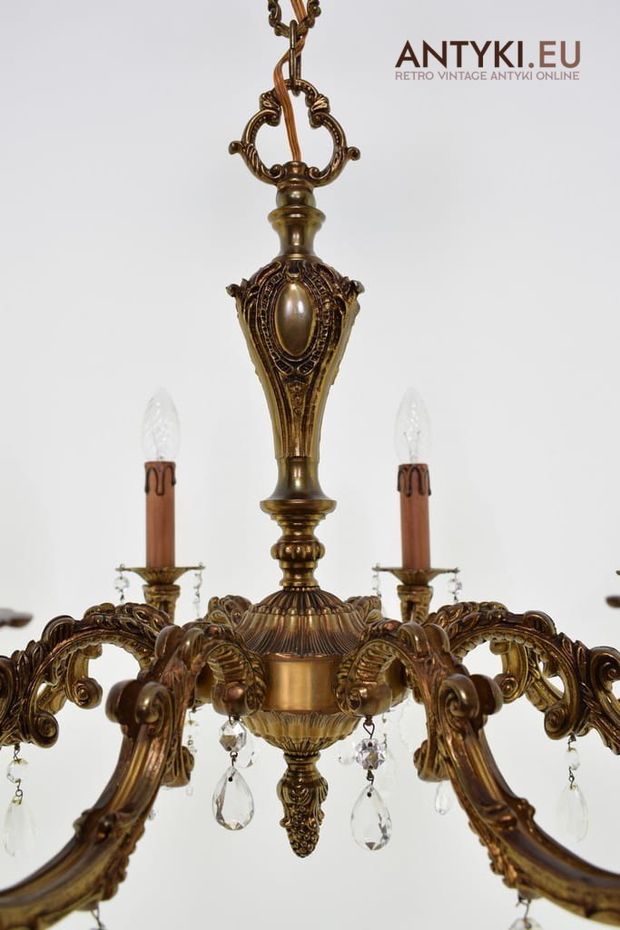 Śliczny stary żyrandole pochodzi z połowy ubiegłego wieku. Sprowadzony z Francji. Wykonany z bardzo ładnych i dokładnych odlewów mosiądzu lub brązu. Waga - 11 kg!!!