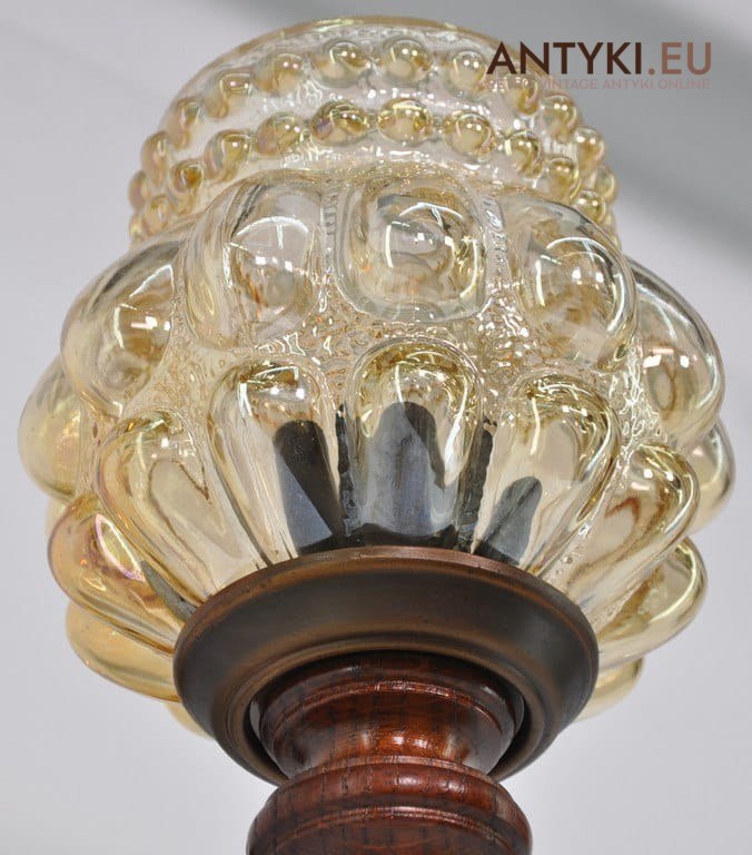 Całość bez uszkodzeń, kompletna. Elektryka sprawna. Standardowe gniazda typu E14 o maksymalnej mocy 80 watt. Wszystkie lampy wysyłamy bez żarówek. W dzisiejszych czasach można kupić żarówki LEDowe o różnej barwie światła, o różnym natężeniu i o różnym kształcie. Więc tak na prawdę malutka żarówka może być potężnej mocy i nie pobierać wielu wattów, przez co nie spali lub nie przegrzewa kabli elektrycznych.