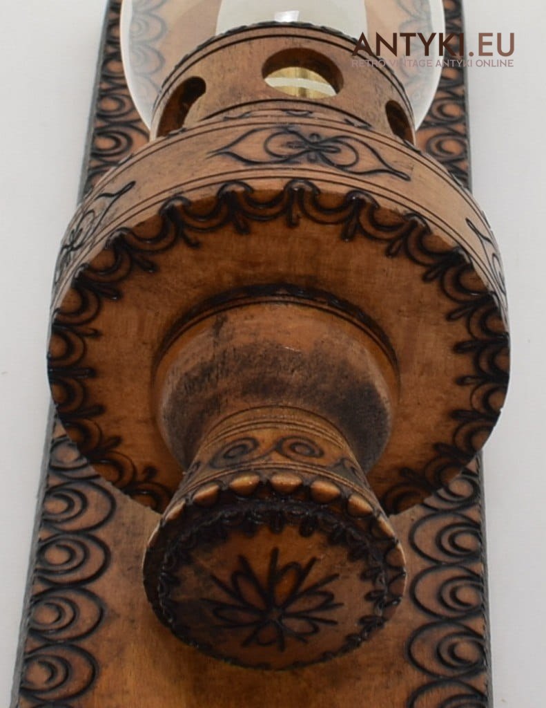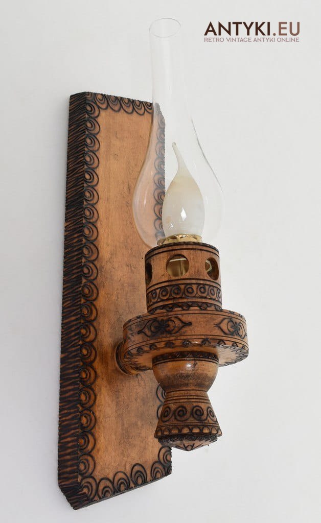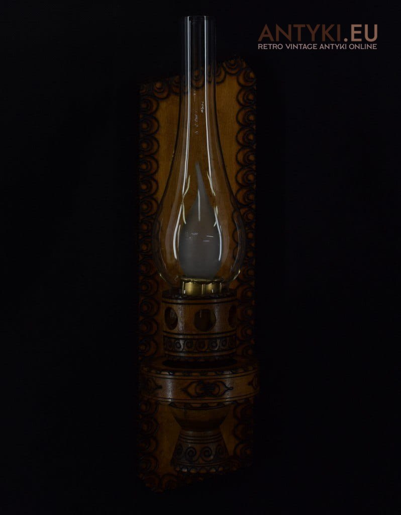 Górlaski kinkiet w formie lampy naftowej. Rękodzieło z Austrii. Oświetlenie góralskie.
