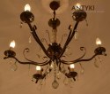 Stan tego starocia ocieniam na bardzo dobry. Wszystkie kryształowe zawieszki są kompletne. Bez uszkodzeń. Elektryka sprawna.