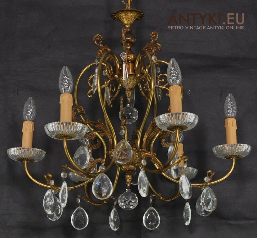 Kryształowy żyrandol salonowy do pałacu zamku. Antyki do salonu.