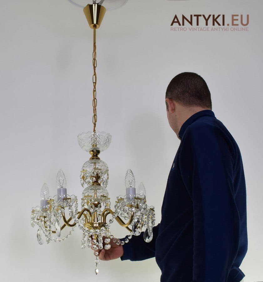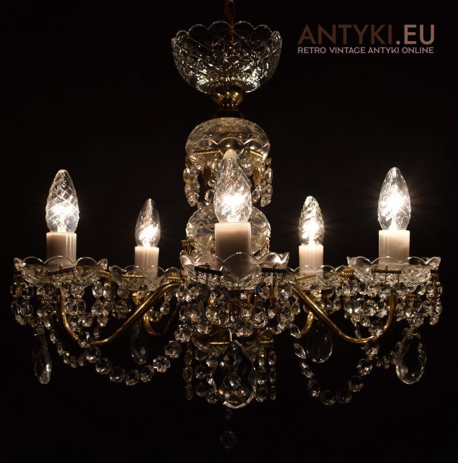 Kryształowy żyrandol z dawnych lat. Lampy antyki.
