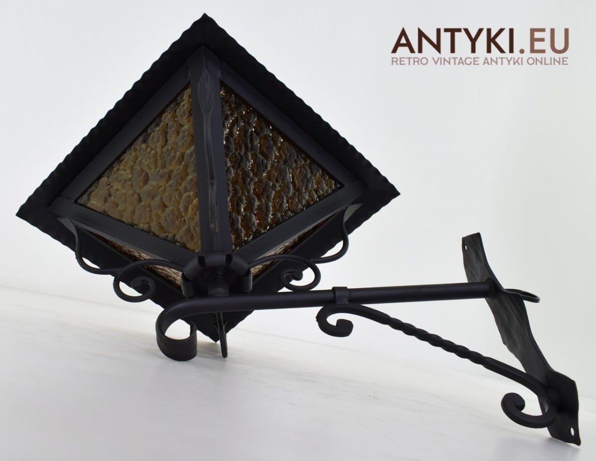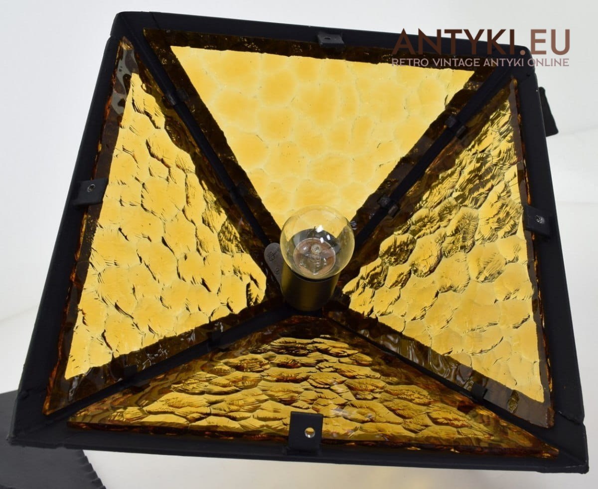 Rustykalny kinkiet wykonany z kutego metalu + szklane żółte szybki. Wewnątrz jest blaszka trzymająca gniazdo E27, na której jest sygnowanie EIN - widoczne na fotce.