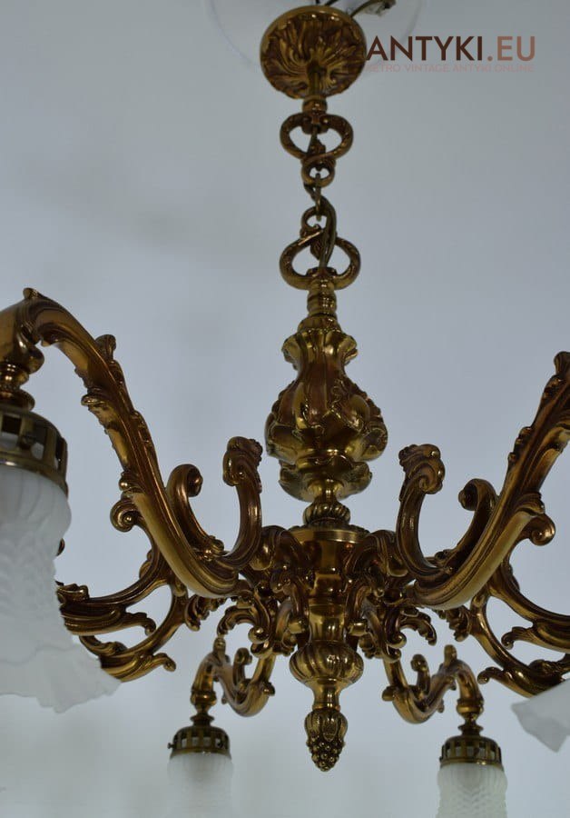Mosiężny żyrandol barokowy antyk do ekskluzywnego salonu zamkowego pałacowego