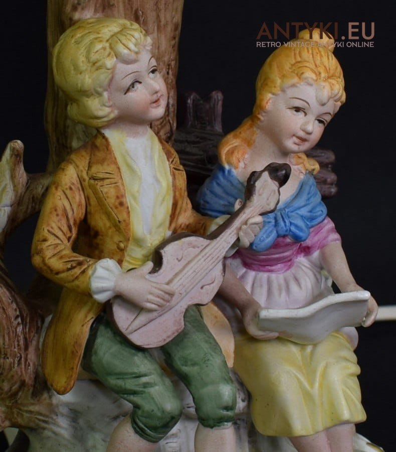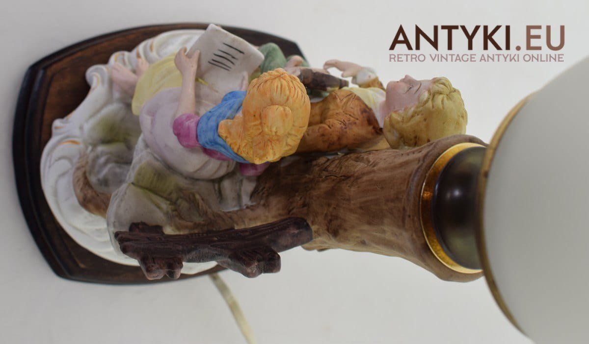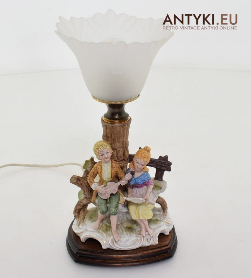 Nostalgiczna lampka babcina na stolik lampa stołowa chłopak ze szkrzypcami i dziewczyna