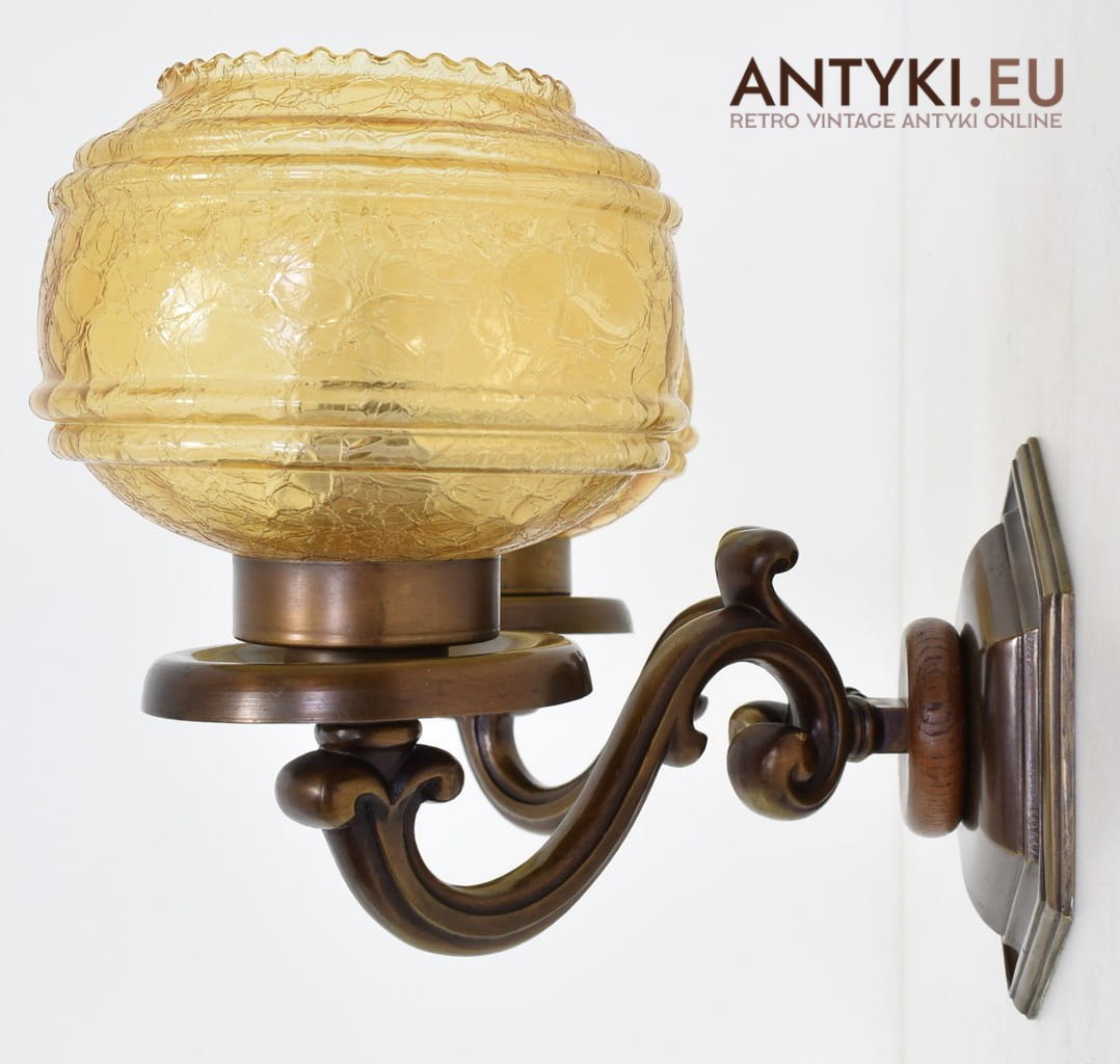 Te retro kinkiety zostały wykonane z solidnych odlewów brązu, co zapewnia im niezwykłą trwałość i elegancki, szlachetny wygląd. Całość dopełniają szklane klosze w kolorze miodowym, wykonane z tzw. mrożonego szkła o strukturze „pajęczej siatki”. To połączenie nadaje lampom vintage'owy charakter z nutą pałacowego szyku.