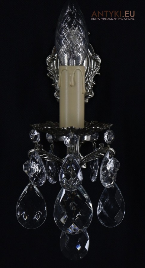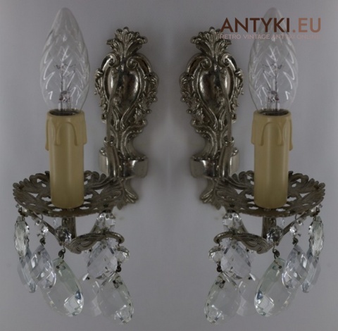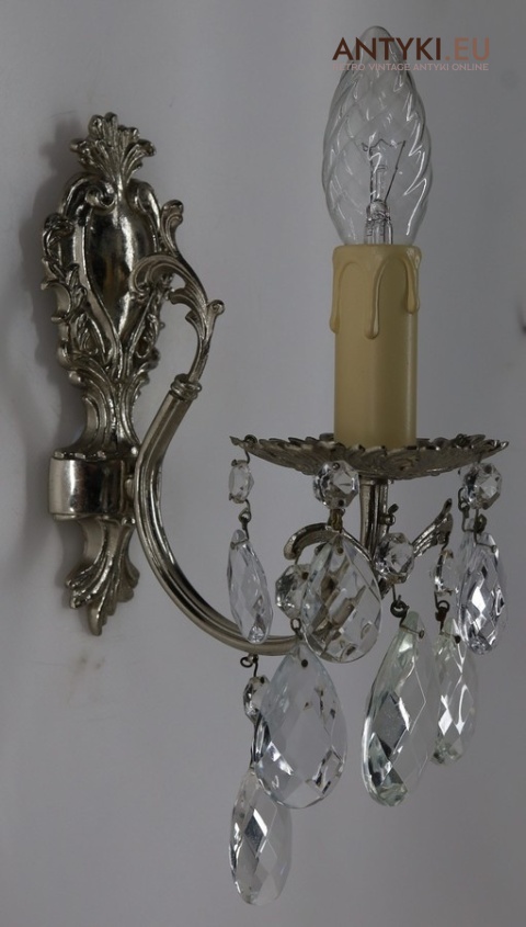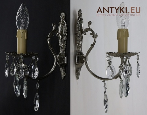 Srebrne stylowe kinkiety vintage sprowadzone z Francji – unikatowe oświetlenie dekoracyjne w klimacie retro, z połowy XX wieku