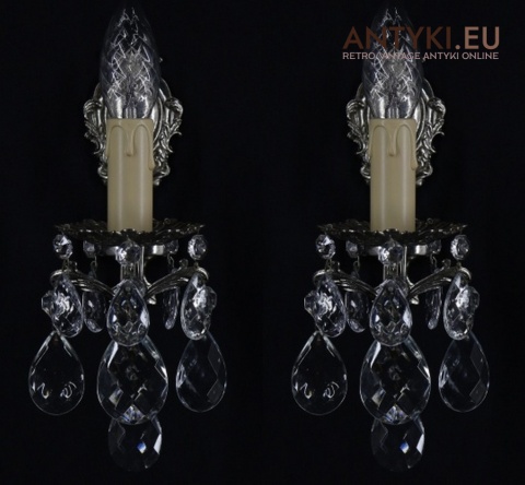 Ten zestaw kinkietów idealnie sprawdzi się jako eleganckie oświetlenie w salonie, jadalni, gabinecie, kancelarii adwokackiej, a także w stylowych wnętrzach hotelowych, restauracjach czy klimatycznych pubach. Dzięki kryształowym zawieszkom światło zyskuje wyjątkowy blask i przyjemny efekt dekoracyjny – takich kinkietów już się nie produkuje!
