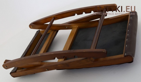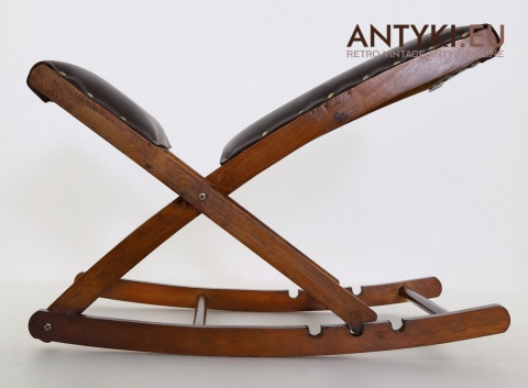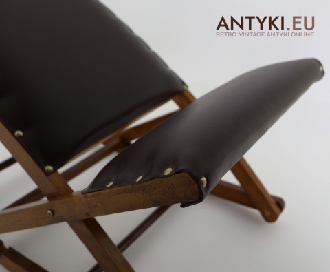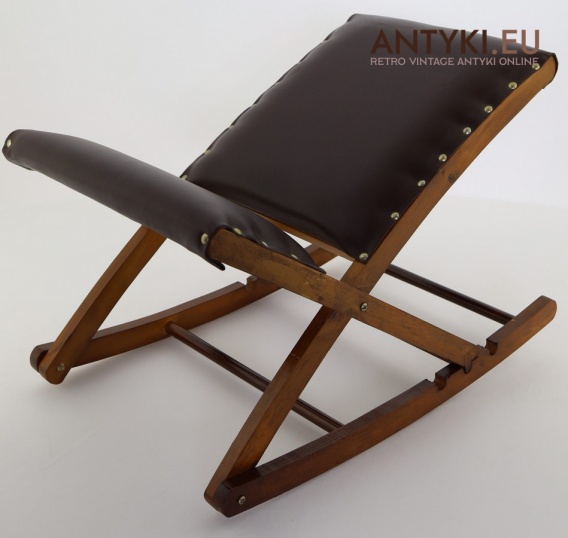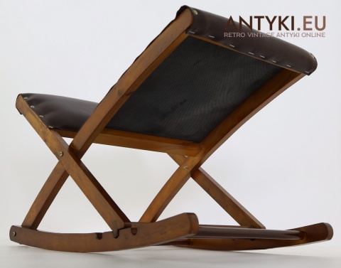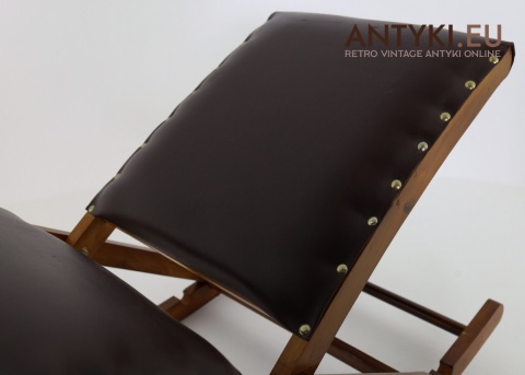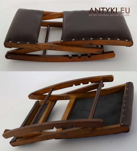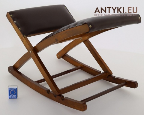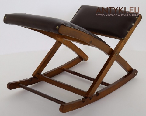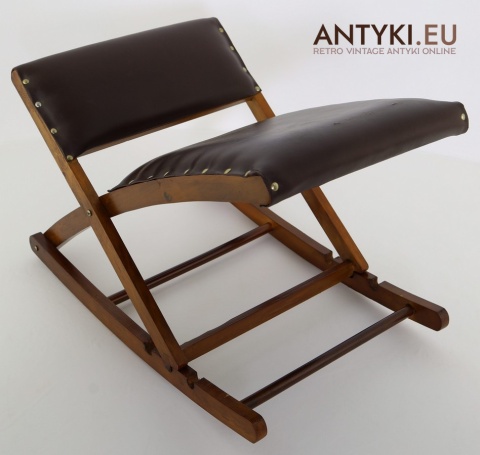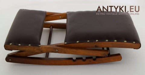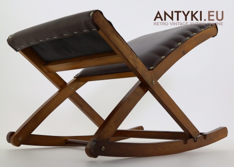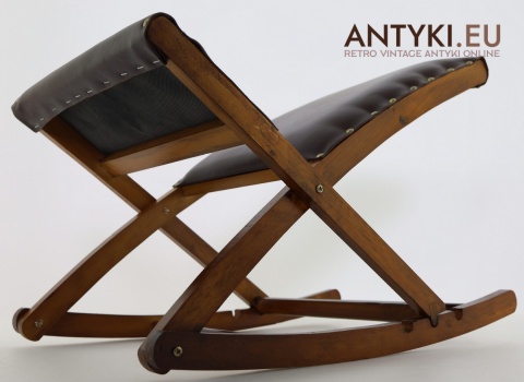 Stylowy solidny podnóżek bujany z lat 60. XX wieku – skóra ekologiczna i lite drewno
