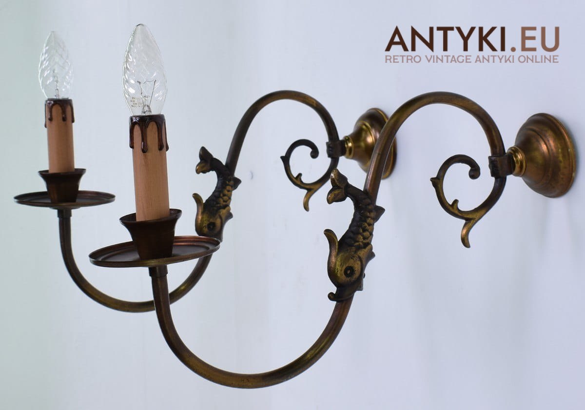 Kinkiety wyczyściliśmy i musieliśmy zmienić zawieszki do mocowania na ścianie, bo oryginalne były zniszczone. Stan zabytkowych lamp ściennych oceniam na bardzo dobry. Elektryka sprawna. Standardowe żarówki E14 o maksymalnej mocy 60 watt każda. Wszystkie antyczne kinkiety i inne używane lampy wysyłamy bez żarówek.