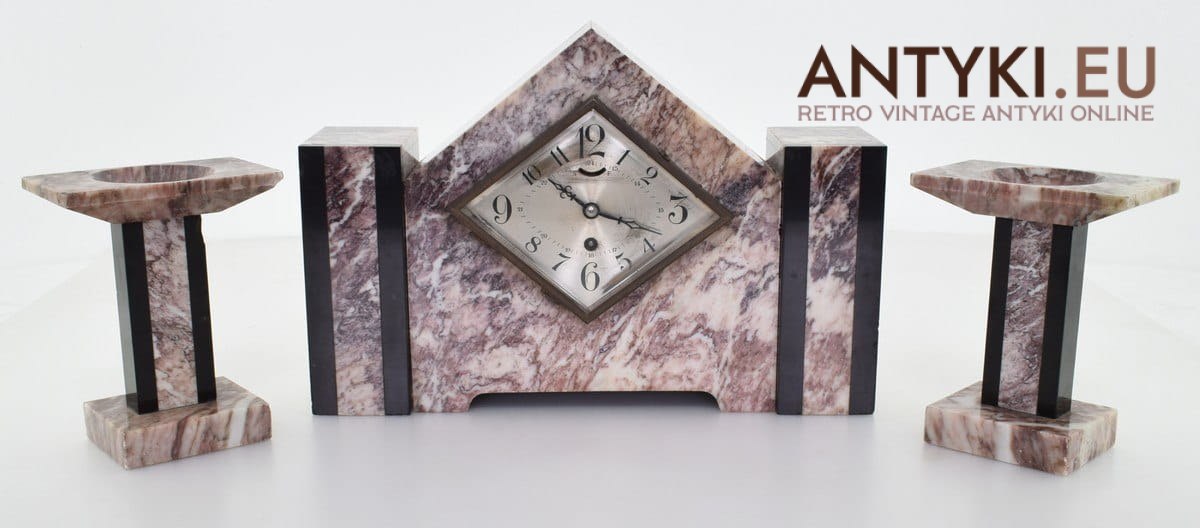 Rasowy zegar ART DECO z przystawkami prawdziwy antyczny zegar kominkowy