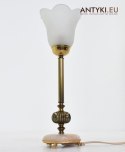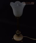Retro lampka stołowa babcina lampeczka marmur mosiądz szklny klosz