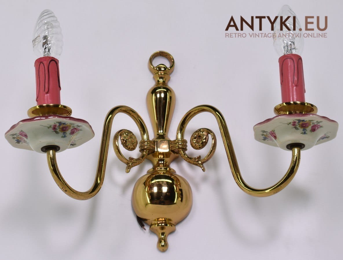 Różowe kinkiety prowansalskie lampki ścienne mosiężny w stylu retro vintage rustyk
