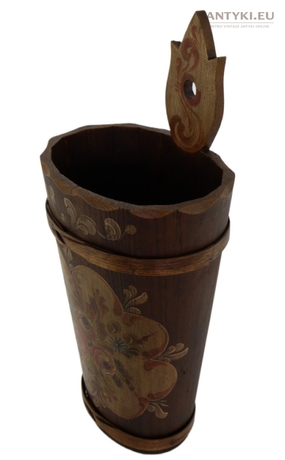 Ludowa maselnica drewniana vintage – rustykalny stojak na laski, parasole, dekoracja