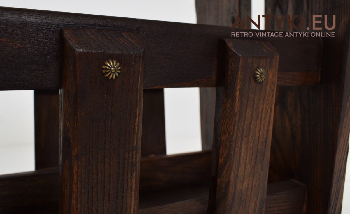 Rustykalny stoliczek stojak na gazety z dawnych lat, gazetnik