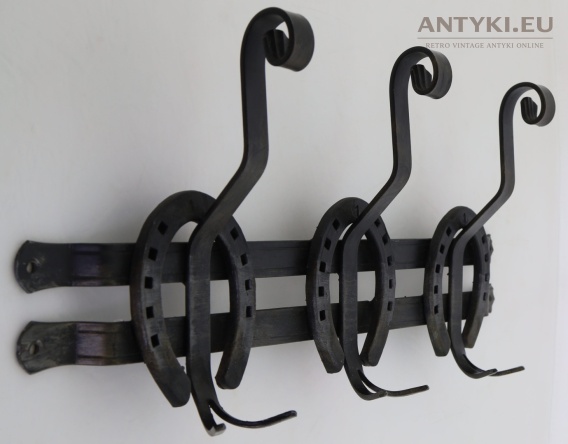 Solidna konstrukcja z grubego, ciężkiego metalu sprawia, że bez problemu utrzyma płaszcze, kurtki, torby, a w kuchni również patelnie czy akcesoria. Charakterystyczne podkowy końskie nadają mu surowy, autentyczny klimat. To praktyczny i dekoracyjny detal do wnętrz retro, vintage, loftowych i country.