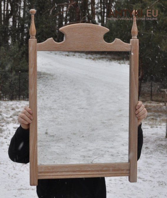 Przedmiot wykonany z litego dębu ( waga 8kg!!! ) . Lustro jest ORYGINALNIE pomalowane specjalna technika w stylu shabby/chic. Z tylu ramy jest oryginalna plyta pilsniowa przytrzymujaca tafle lustra . Tafla lustra w bardzo dobrym stanie . Z tylu ramy sa 2 specjalne oryginalne zawieszki do montazu lustra na scianie . Przedmiot w bardzo dobrym stanie , bez sladow po drewnojadach , bez brzydkich zapachod . Bez przykrych niespodzianek . Przedmiot kupiony na gieldzie antykow w Austrii .