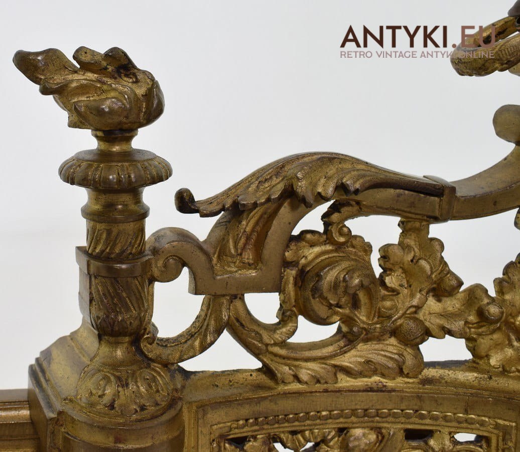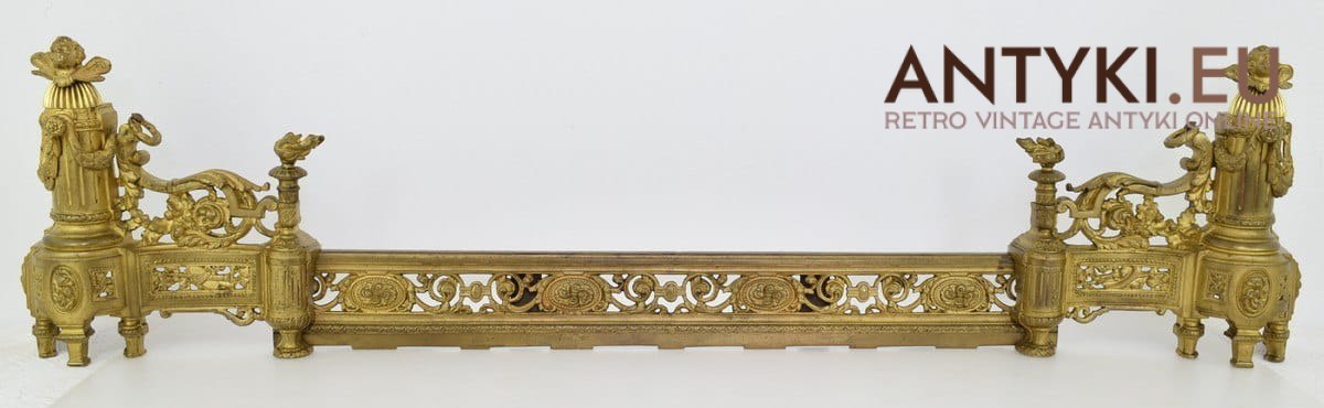 Prawdziwa antyczna ochrona wystawiana przed kominkiem w celu uniknięcia poparzenia. Wykonana z brązu. Pochodzi z epoki secesyjnej.