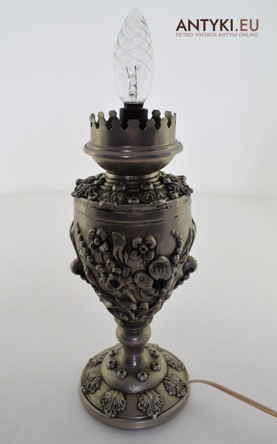Srebrna lampa stołowa lampka babcina na stoliczek antyk do rustykalnego pokoju