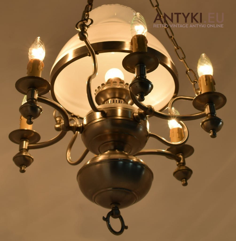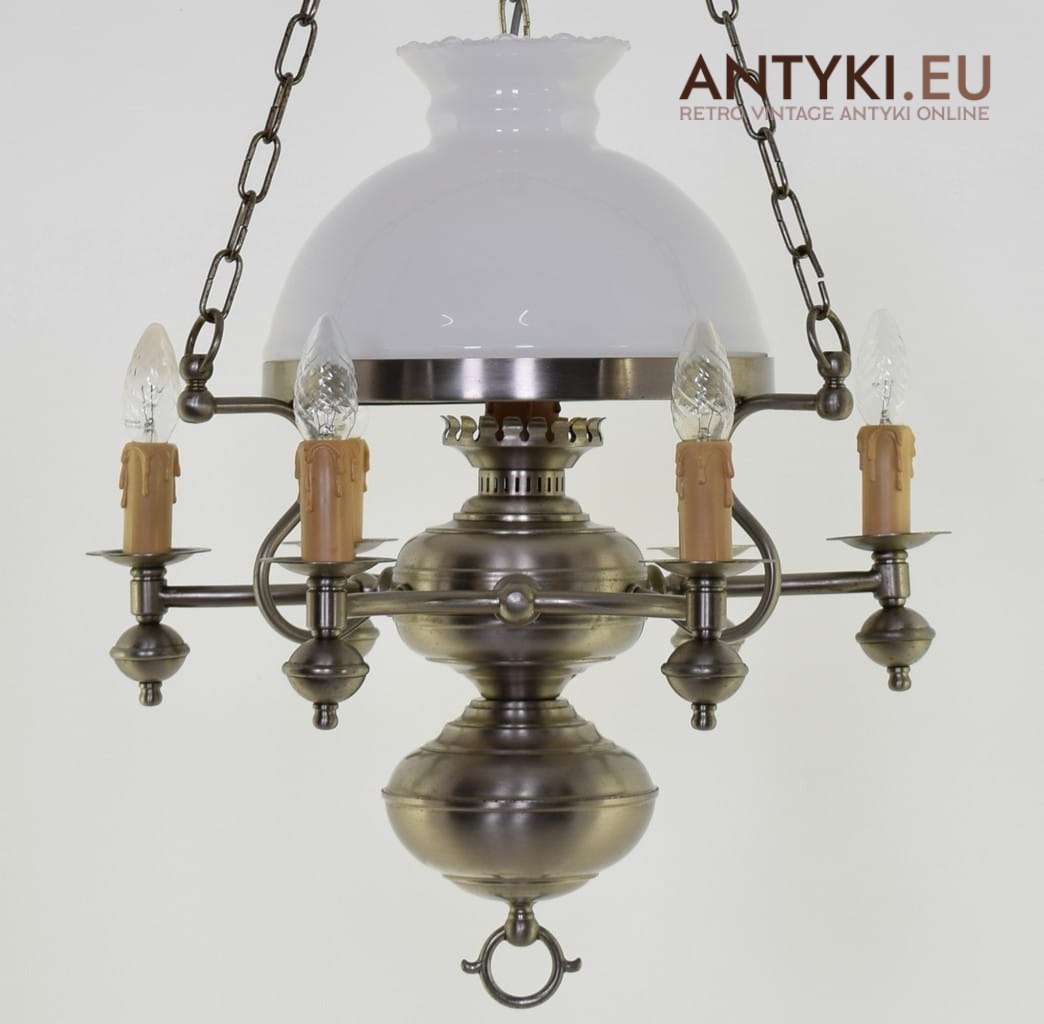 Srebrna lampa sufitowa z kloszem. Rustykalne żyrandole.